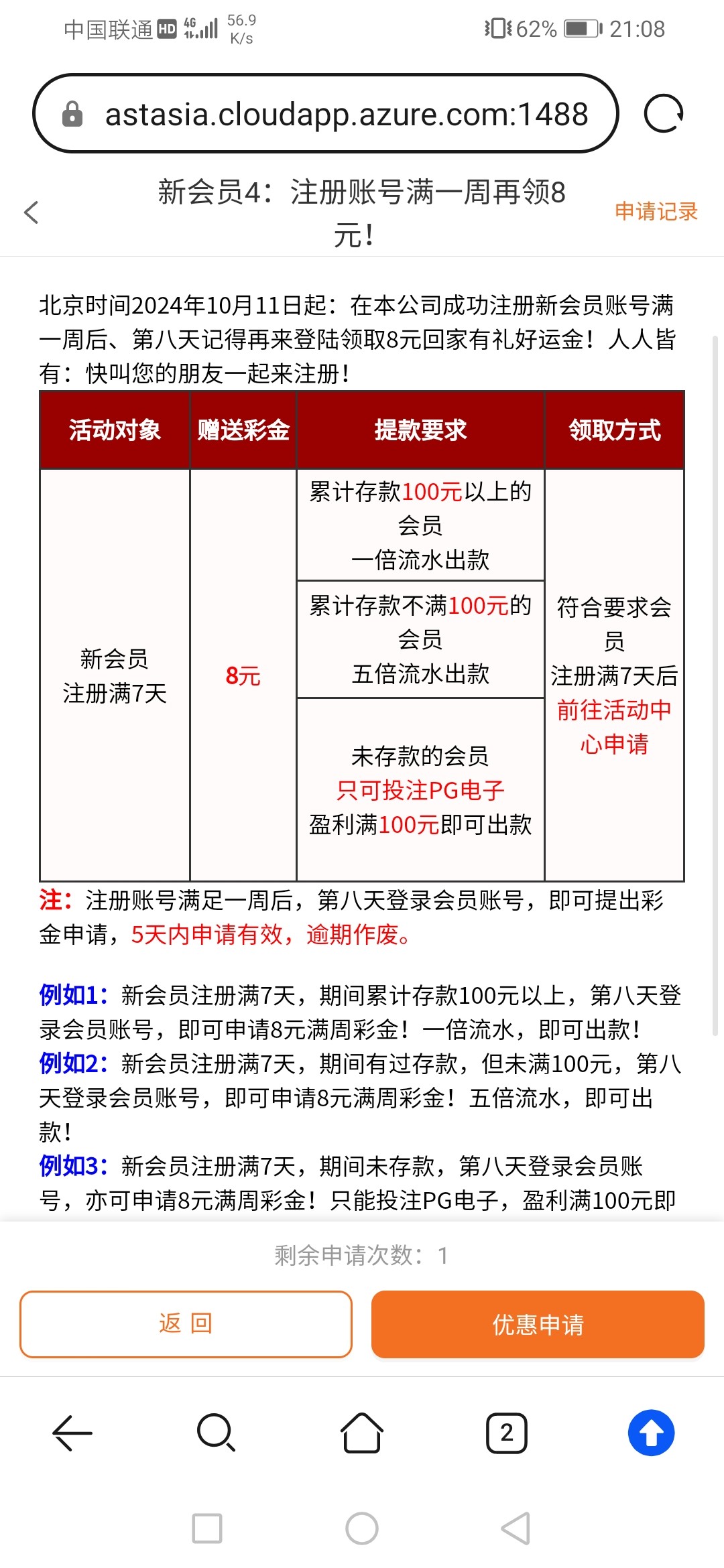 注册满周 即可申请8彩金