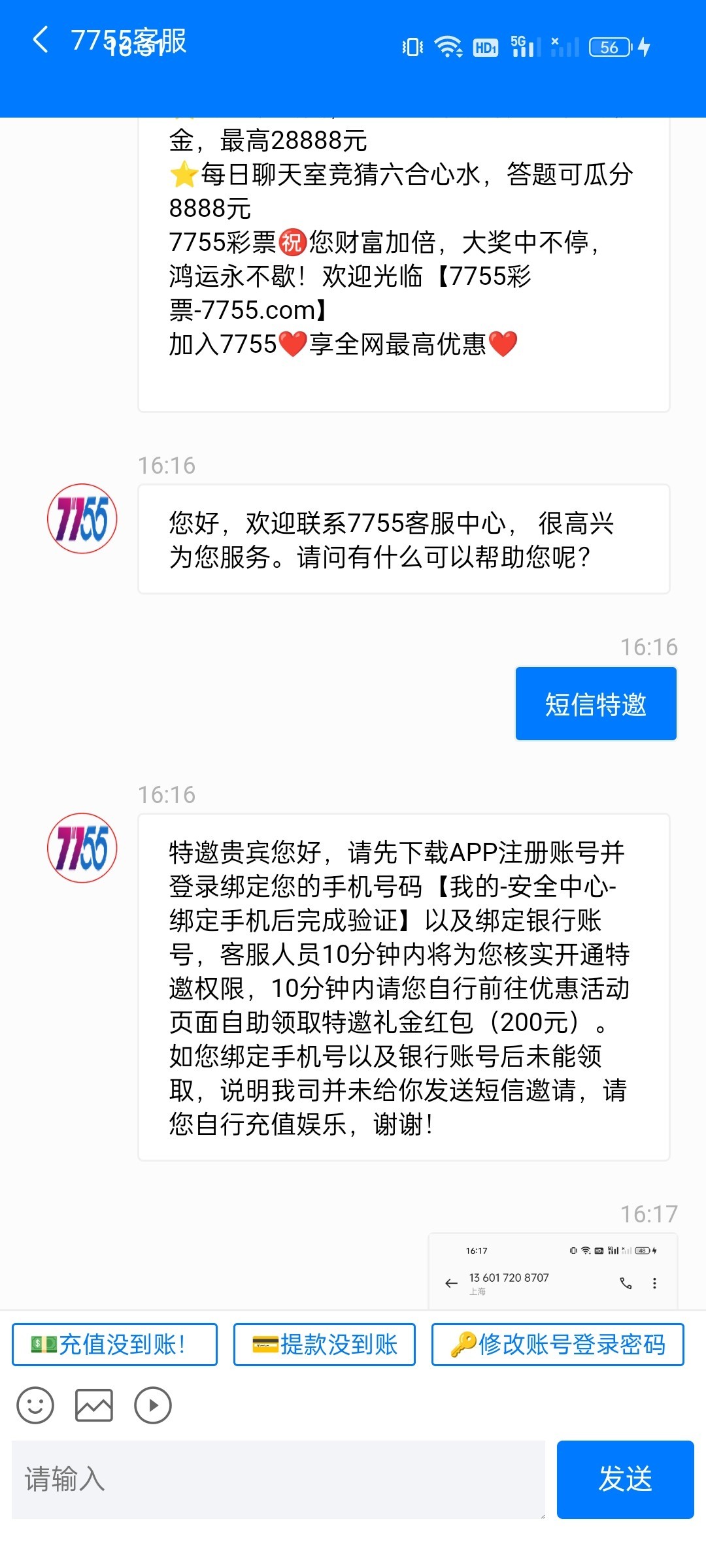 7755短信特邀 没打出来 自己去碰瓷一下 注意:不要充值 出款自测