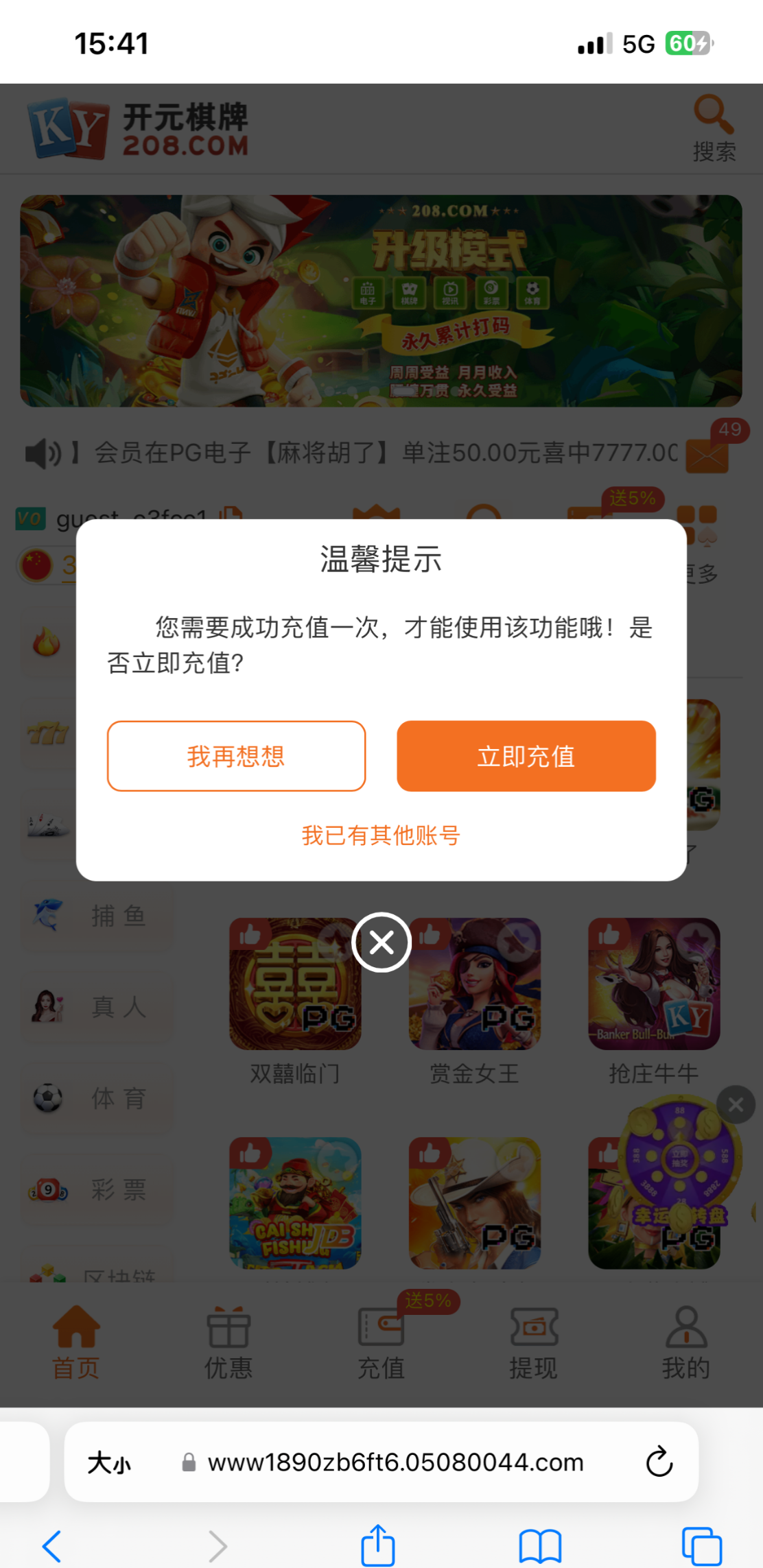 短信特邀来的进去就有38不过玩不了提示要充值一比才能玩,有勇士去试 试吗网址