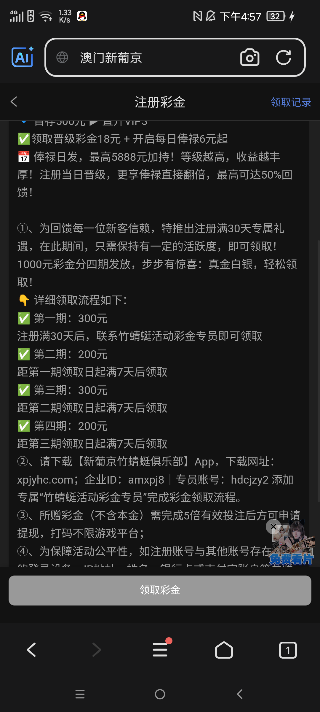 链接进去就有一千 充值才能提现