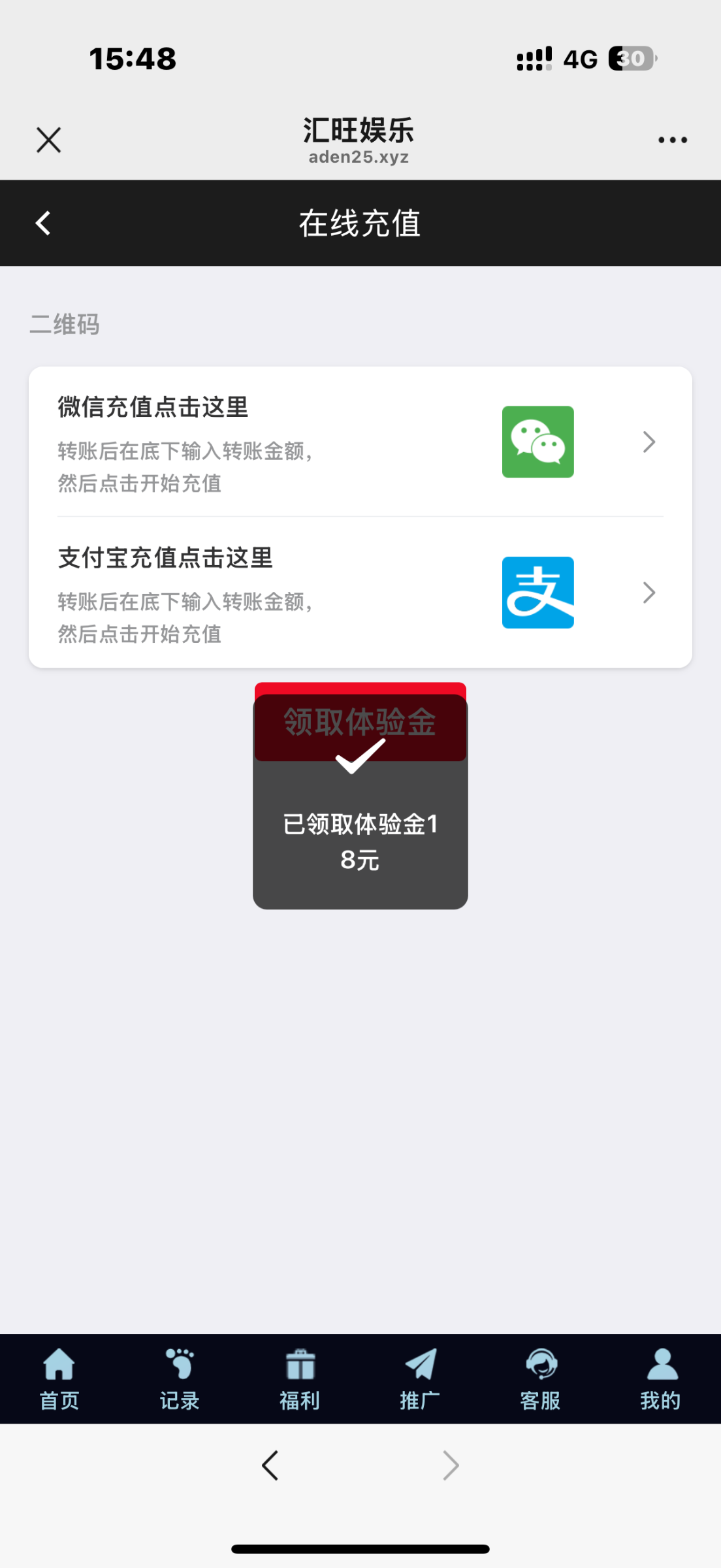 扫码登陆找客服领18体验金