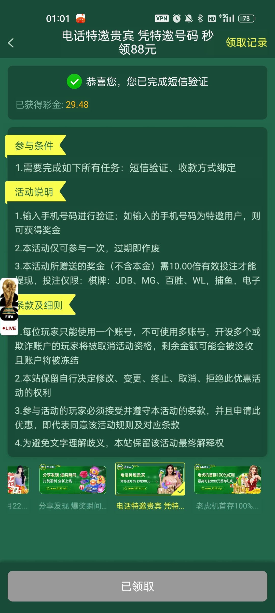 下载APP注册绑卡打10倍水提现,提钱包要充值一笔最低10起充,提现最低10起提好像。