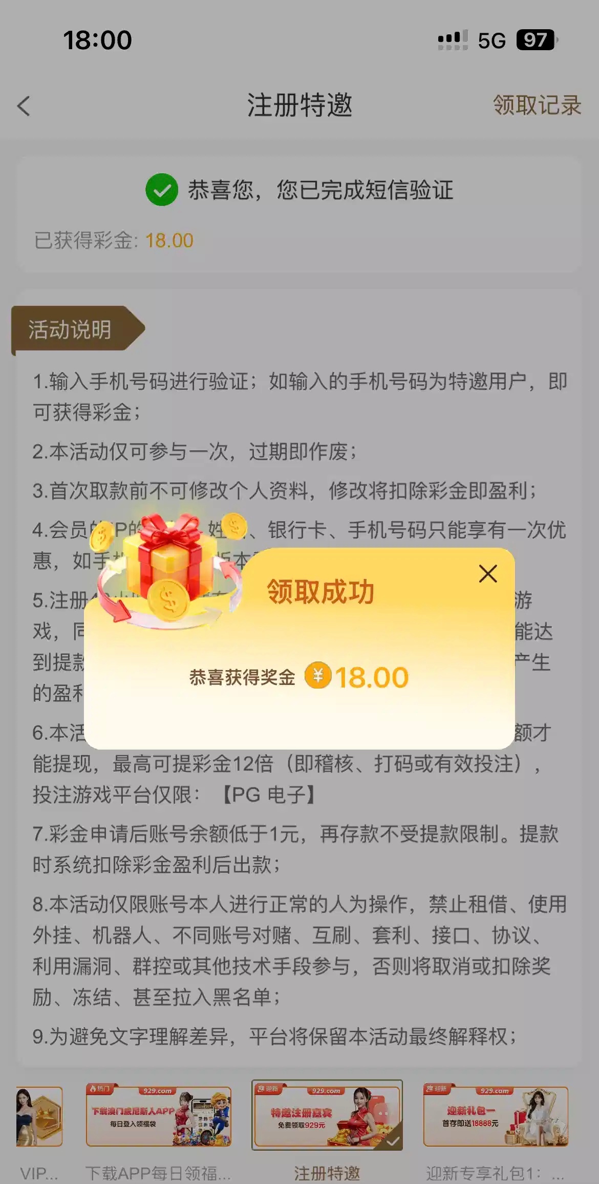 【威尼斯929】碰瓷特邀送18