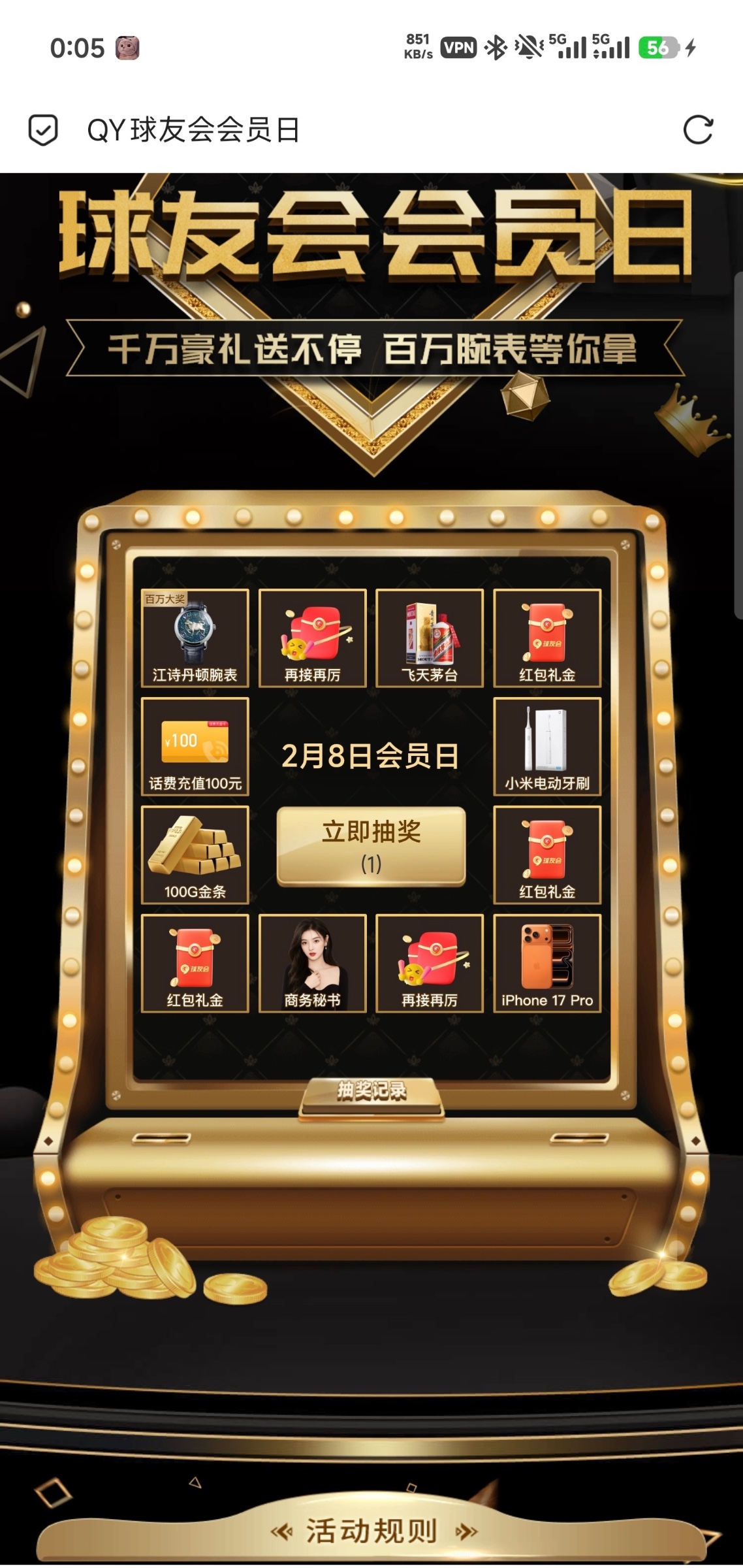 球友会会员日,最近有玩过的记得去抽奖