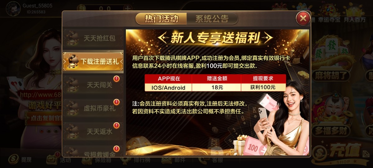 【腾讯棋牌】—✅—注册送18
